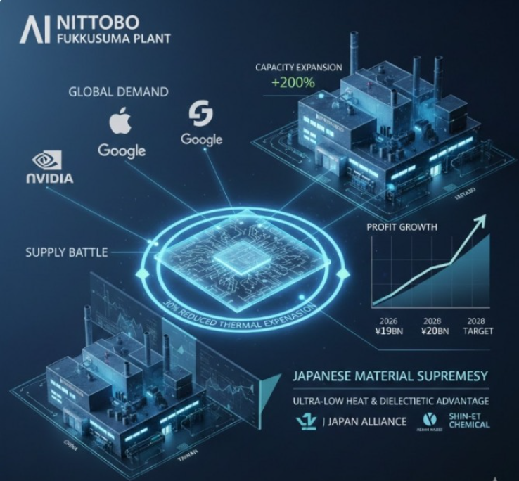 인공지능(AI) 반도체의 고성능화로 인한 '발열 및 변형' 문제가 핵심 과제로 부상한 가운데, 세계 유리섬유 시장을 지배하고 있는 일본의 닛토 보세키(Nitto Boseki, 이하 닛토보)가 열팽창을 획기적